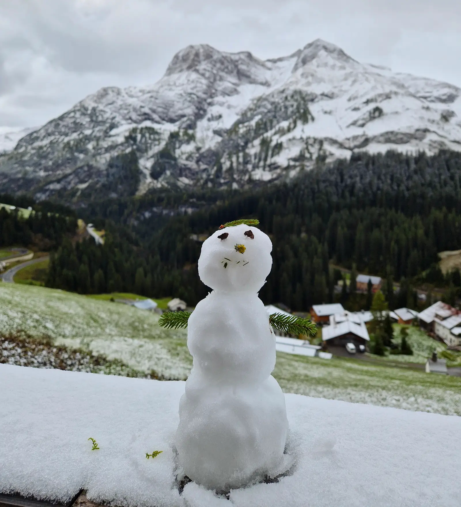 Am Sonntagmorgen überraschte uns das Wetter mit einem leichten Schneefall. Die Kinder freuten sich riesig und bauten voller Freude einen Mini-Schneemann.